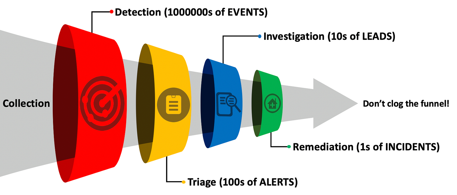 ブルーチームの防御策は「Funnel of Fidelity」という概念で表されることが多いらしく以下のような図で示されます。